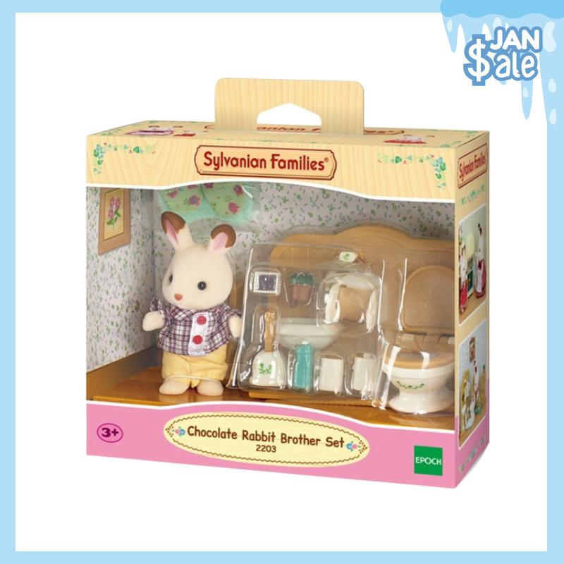 Sylvanian Families Chocolate Rabbit Brother Set (Washroom) / ซิลวาเนียน แฟมิลี่ ชุดเด็กชายชอคโกแลตแรบบิท (ห้องน้ำ)