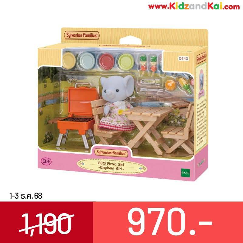 Sylvanian BBQ Picnic Set -Elephant Girl/ ซิลวาเนียน แฟมิลี่ ชุดบาร์บีคิวปิคนิคและเด็กหญิงช้าง