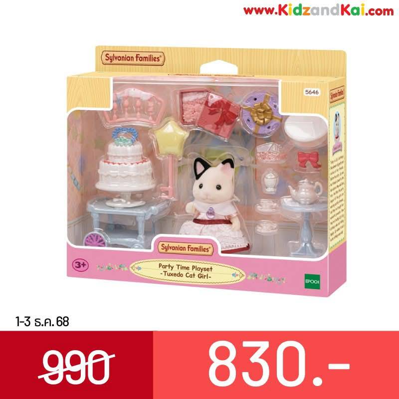 Sylvanian Party Time Playset -Tuxedo Cat Girl/ ซิลวาเนียน แฟมิลี่ ชุดปาร์ตี้ไทม์และเด็กหญิงทักซิโด้แคท