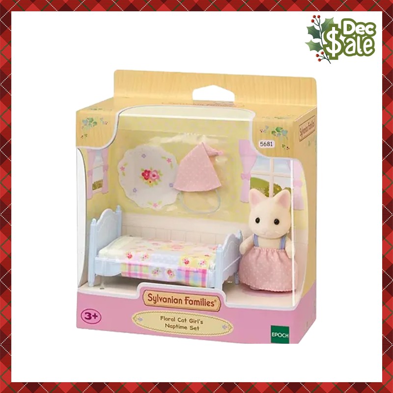 Sylvanian Families Floral Cat Girl’s Naptime Set (ES Series) / ซิลวาเนียน แฟมิลี่ ชุดเด็กหญิงฟลอรัลแคทและเตียงนอน