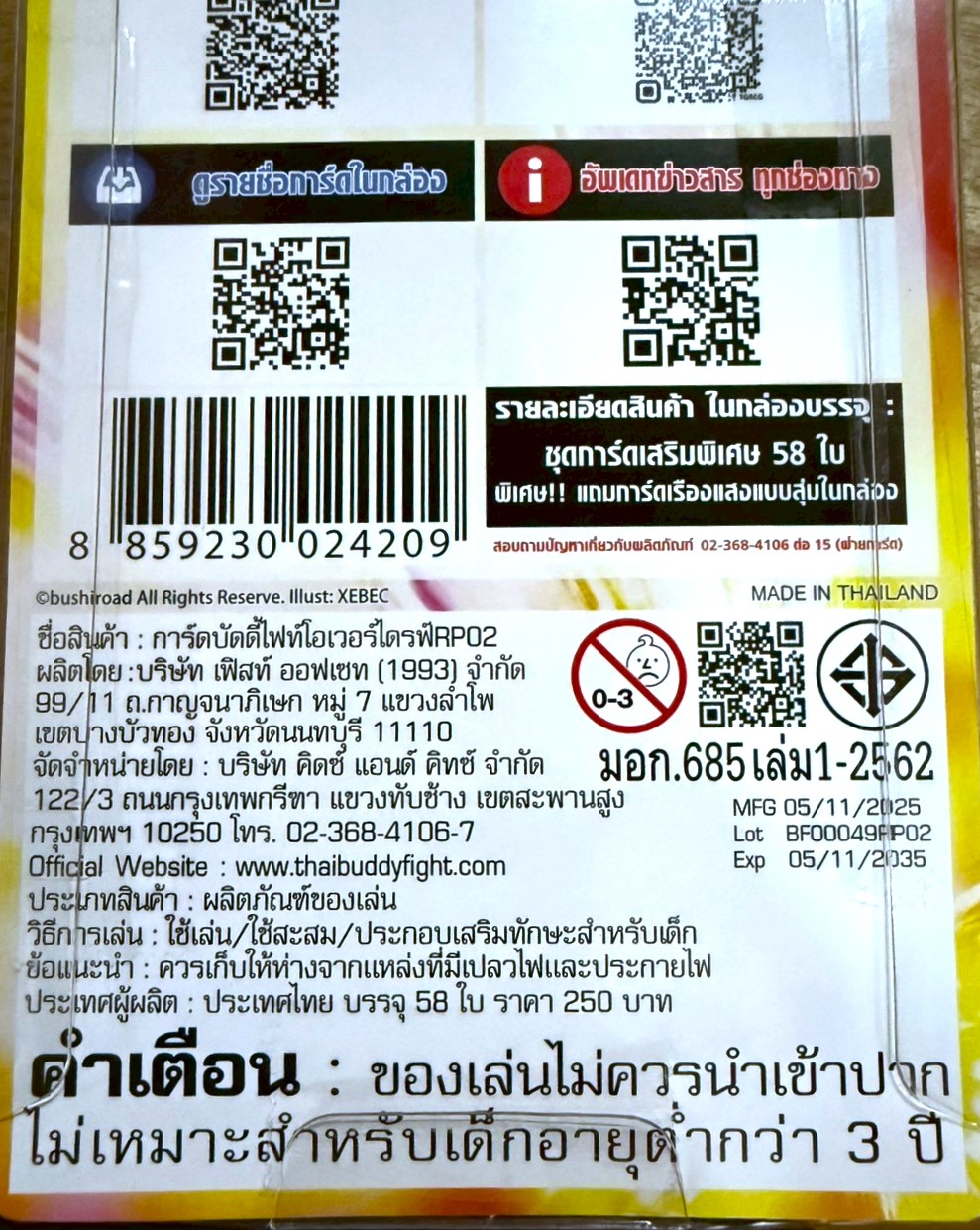 การ์ดบัดดี้ไฟท์ โอเวอร์ไดรฟ์ BFO-RP02 / BuddyFight New Drive Card Game