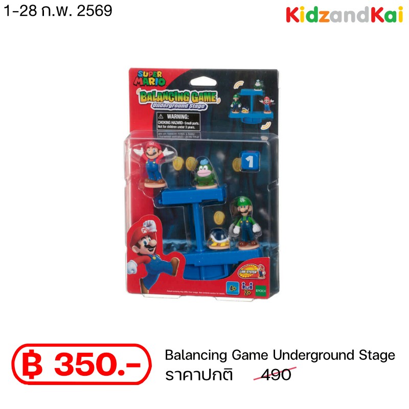 - เกมสำหรับสร้างสมาธิ ความสนุก และ ความสัมพันธ์กับคนอื่น ในเกม Super Mario Balancing พร้อมเวทีใต้น้ำ - อุปกรณ์ภายในกล่องมี ตัวละครทั้งหมด 4 ตัว ลูกเต๋า และ ฐานวาง - สามารถเล่นเป็นเกมได้ หรือ จะวางเป็นฐานสำหรับสะสมก็ได้ - มีให้สะสมถึง 3 แบบไม่ซ้ำกัน สามารถนำมาเล่นรวมกันได้