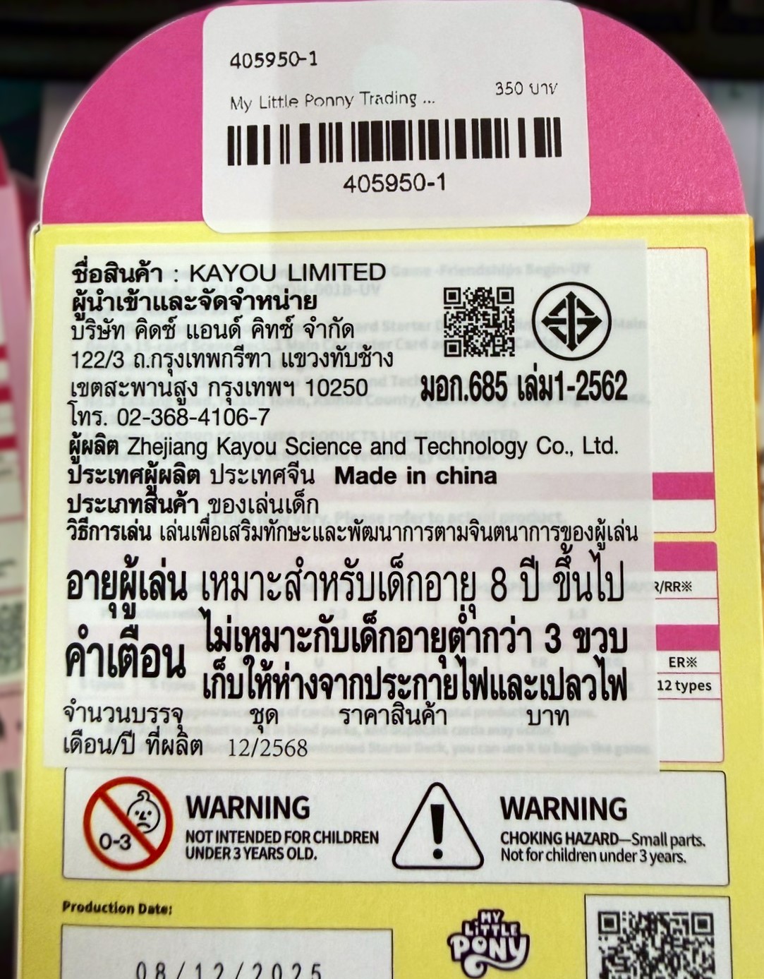 : ชุดเริ่มเล่น My Little Porny Trading Card Game มี 6 แบบให้เลือกตามสไลด์ของตัวละครในเรื่อง