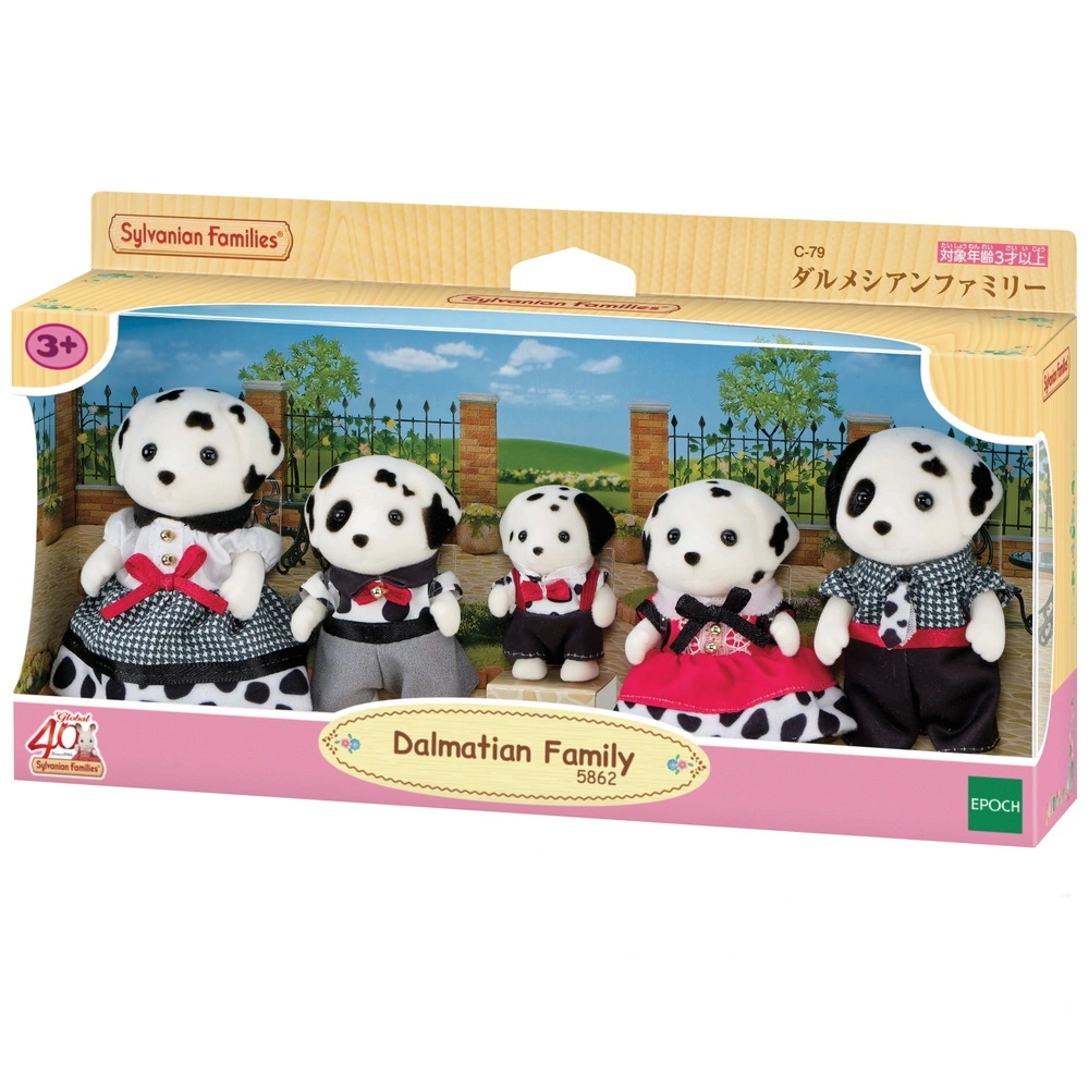 ตุ๊กตาชุดพิเศษเนื่องในโอกาสครบรอบ 40 ปี ซิลวาเนียน แฟมิลี่ ครอบครัวดัลเมเชียนโดดเด่นด้วยเอกลักษณ์ลายจุดสีดำ สมาชิกทั้ง 5 สวมเสื้อผ้าสุดเก๋ที่มีลวดลายจุดเข้าชุดกัน ศีรษะ แขน และขาของตุ๊กตาขยับได้เล็กน้อย