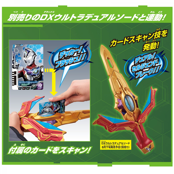 ภายในชุดจะแถม Ultra Dimension Card 2 ใบ สามารถเล่นแปลงร่างได้ 2 ร่างคือ อุลตร้าแมนเดกเกอร์ แฟลชไทป์ และ อุลตร้าแมนเดกเกอร์ สตรองไทป์