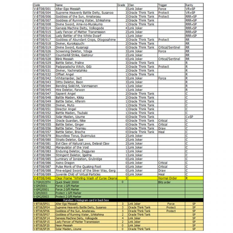 และตัวเก่งเลยคือยูนิทเกรด 4 พลัง 30000 ที่ไม่สามารถไรด์หรือคอลได้ แต่สามารถนำเข้าสนามได้ด้วยสภาพ “ล็อค” จะได้ยูนิททรงพลังสุดๆ เลยทีเดียวแถมตีเสร็จล็อคตัวเอง พอเมสไซยาห์โจมตีก็ปลดล็อคมาตีอีกครั้ง!! เด็คไหนไม่มีการ์ดเคลียร์บอร์ด เตรียมพบกับฝันร้ายได้เลย!  – ด้านโอราเคิล ทิงค์ แทงค์ จะได้ยูนิทหลักใบใหม่อย่างซูซาโนโอะ ที่มีความสามารถเปิดการ์ดใบบนสุด 2-3 ใบและใช้งานผลทริกเกอร์ที่แสดงได้ในเมนเฟส ทำให้โอกาสติดทริกเกอร์เพิ่มสูงมาก และยังมียูนิทเสริมอื่นๆที่ถ้าถูกแสดงจากใบบนสุดกองจะเกิดความสามารถอีกด้วย