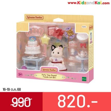 Sylvanian Party Time Playset -Tuxedo Cat Girl/ ซิลวาเนียน แฟมิลี่ ชุดปาร์ตี้ไทม์และเด็กหญิงทักซิโด้แคท
